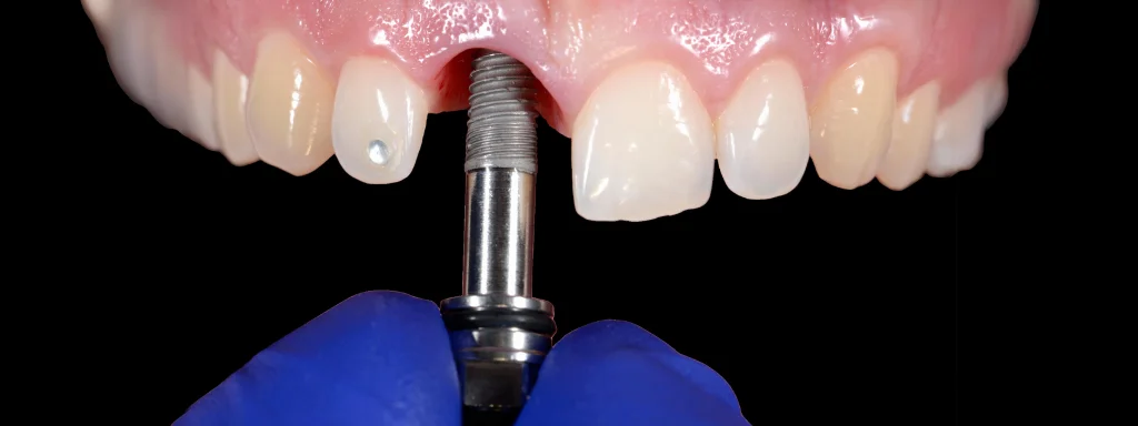 ➤ Dental implants are a permanent solution for missing teeth, replacing both the root and the crown. This surgical procedure involves implanting a titanium post into the jawbone, providing a sturdy foundation for a natural-looking artificial tooth.
